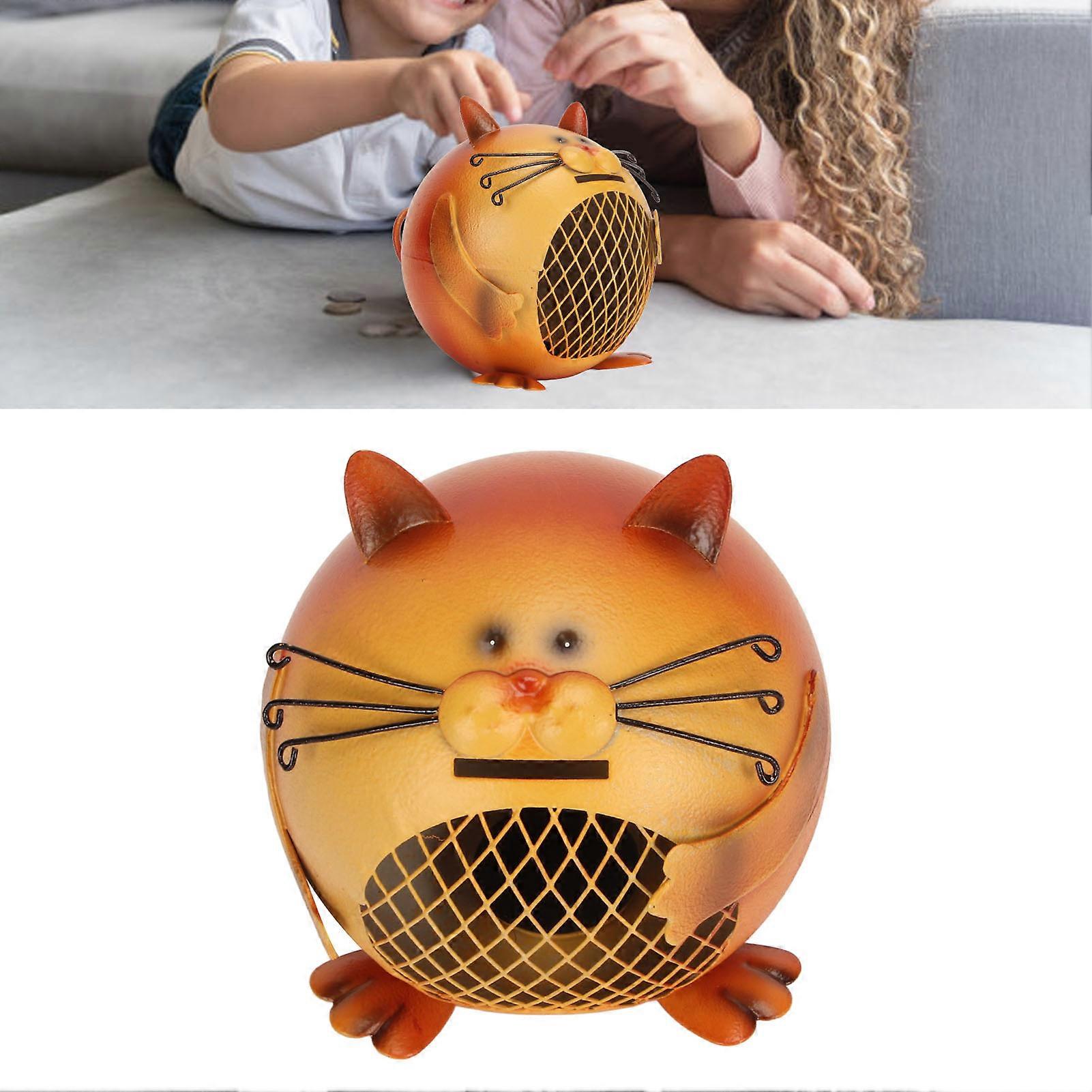 Kids Piggy Bank Cute Orange Cat Meshed Colorfast Sturdy Metal Stable Base Coin Bank for Bedroom Bedside Table
