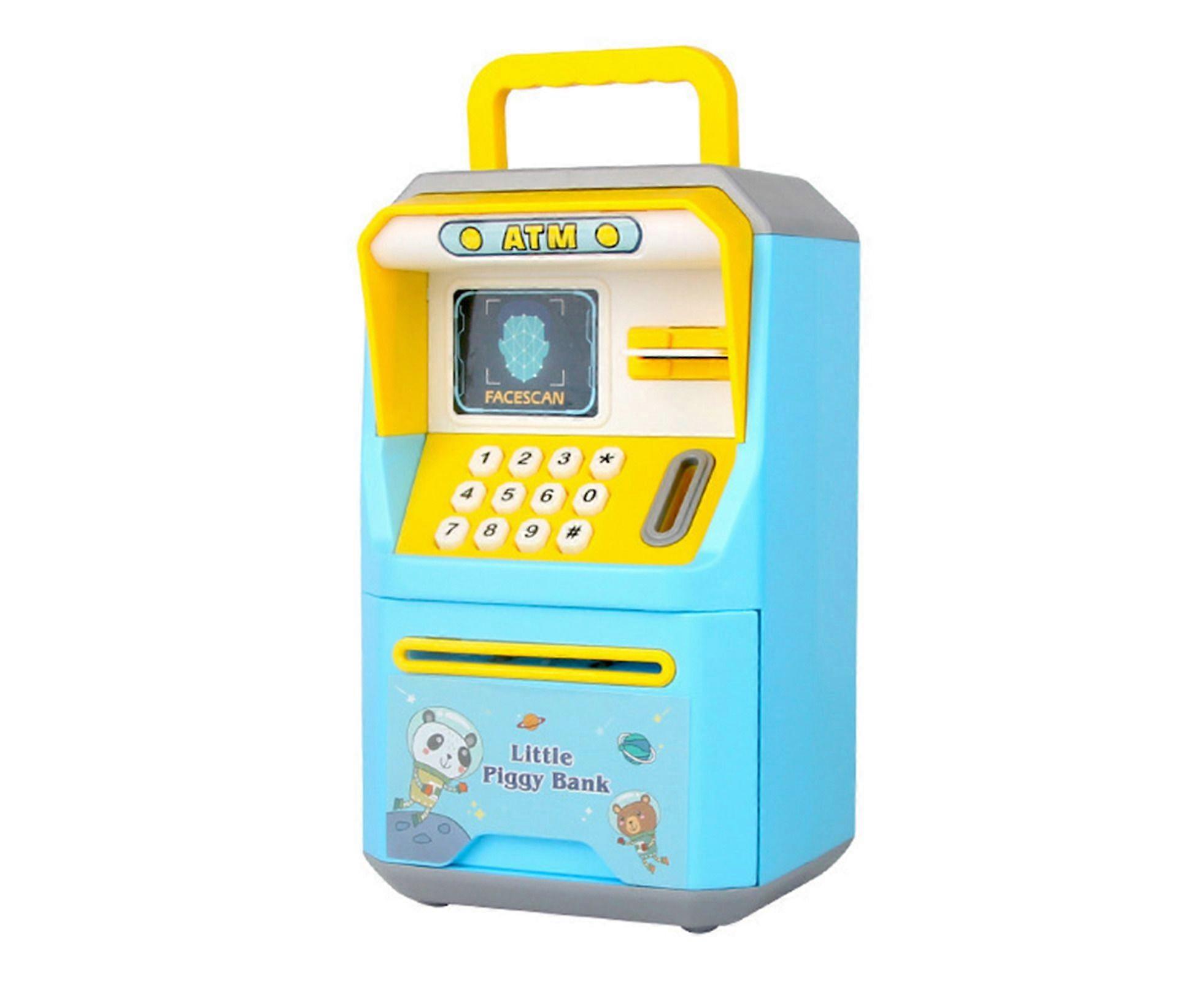 Kids Piggy Bank Handle Built-in Music Digital Password Simulation Face Recognition Save Money Machine Auto Scroll Cash ATM Saver Money Saving Box - Bl