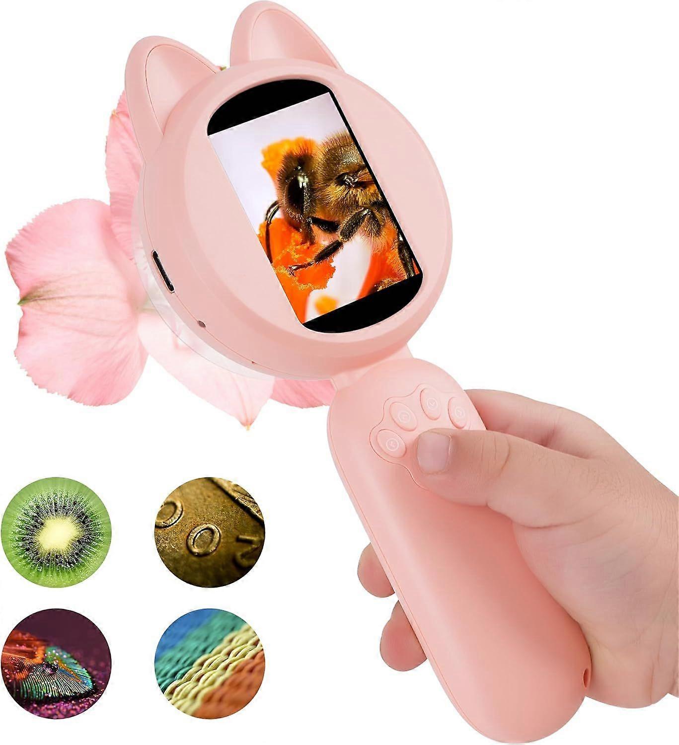 Kids Microscope, Mini Digital Microscope for with 2'' IPS Screen,Gifts for Kids Aged 3-12 (Pink)