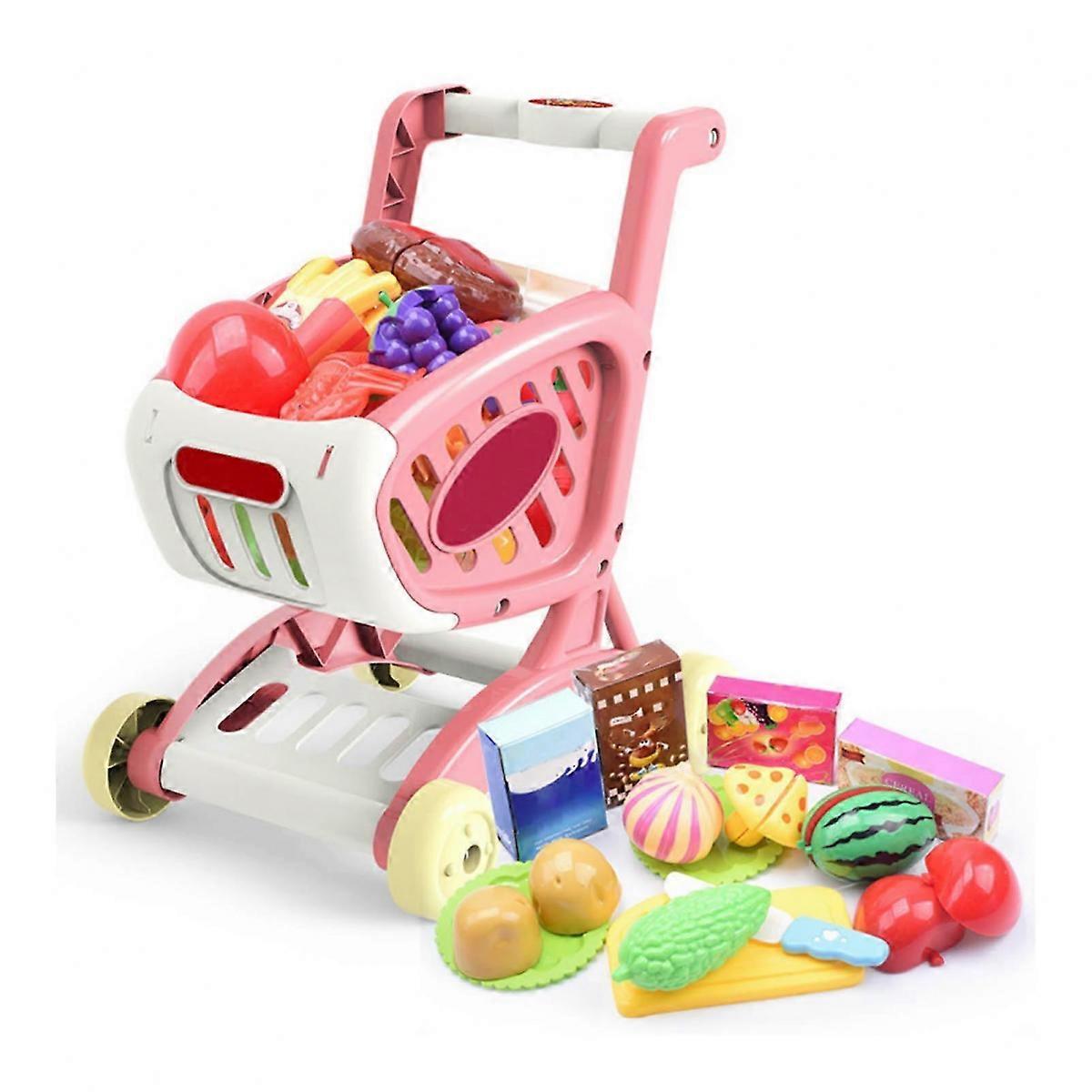Kids Grocery Cart Playset Fruit Vegetable Food Educational Bright Color Pink