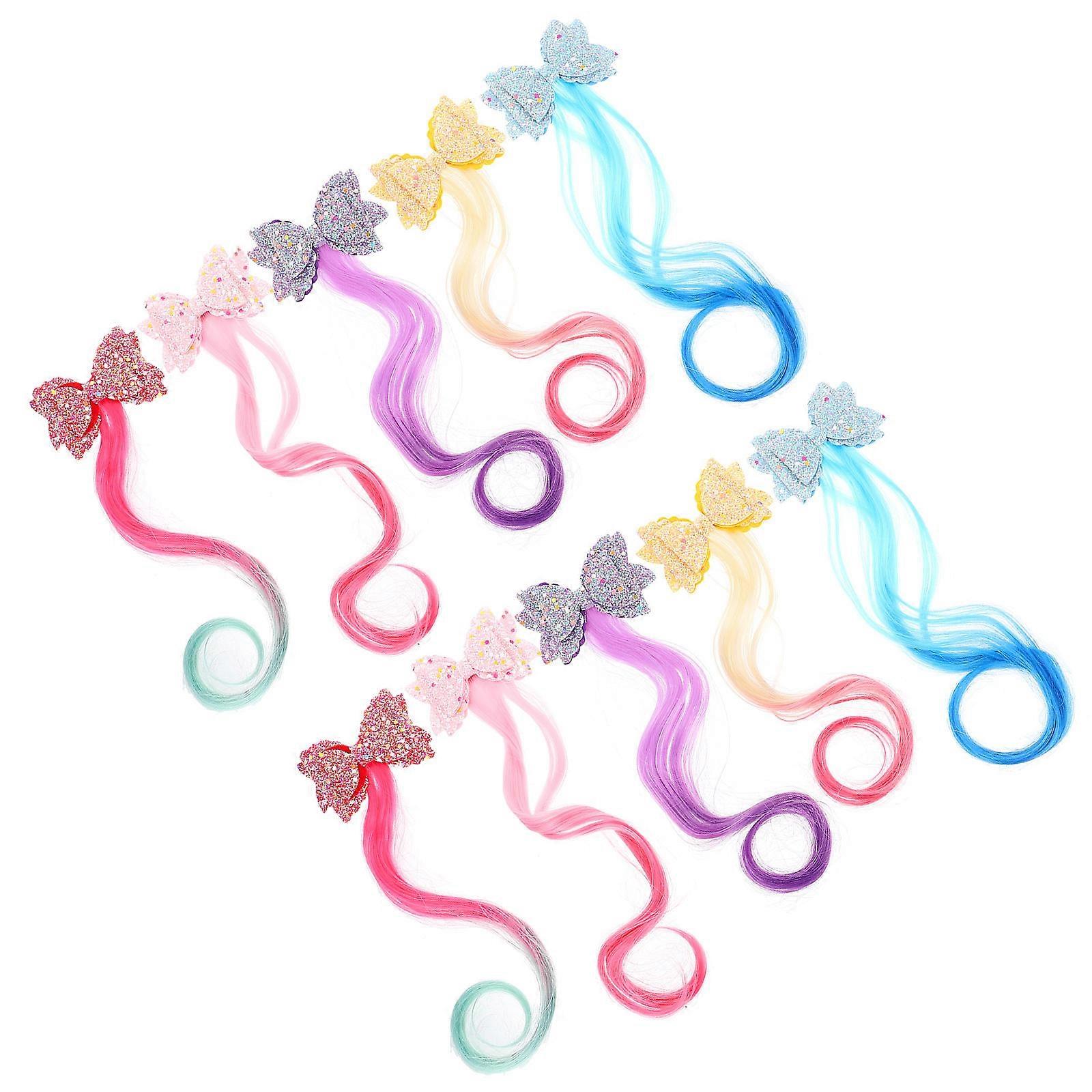 Kids 10Pcs Hair Extensions Clips Assorted Color Bow-Knot Design For Birthdays And Festivals Hair Accessories