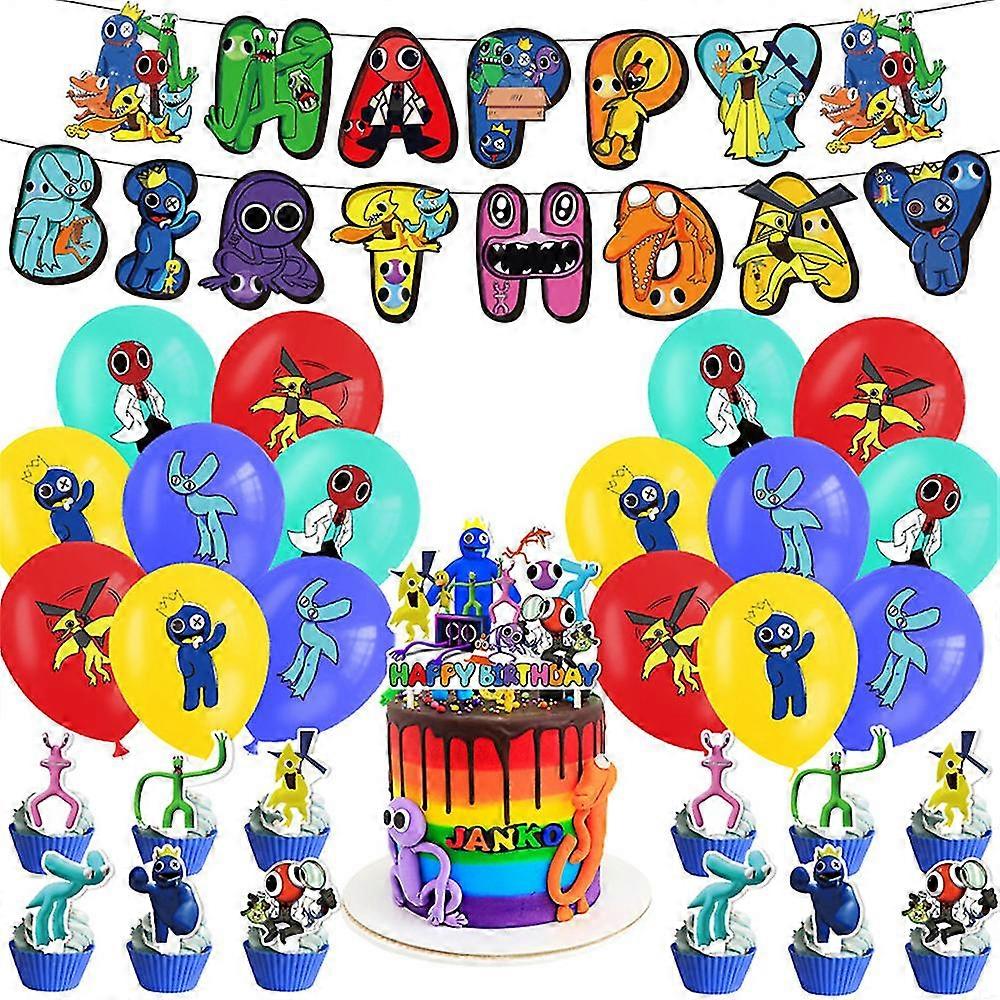 Kids Roblox Rainbow Friends 2 Birthday Party Decorations Set Include Happy Birthday Banner, Balloon, Cake/cupcake Topper, Game Theme Party Supplies