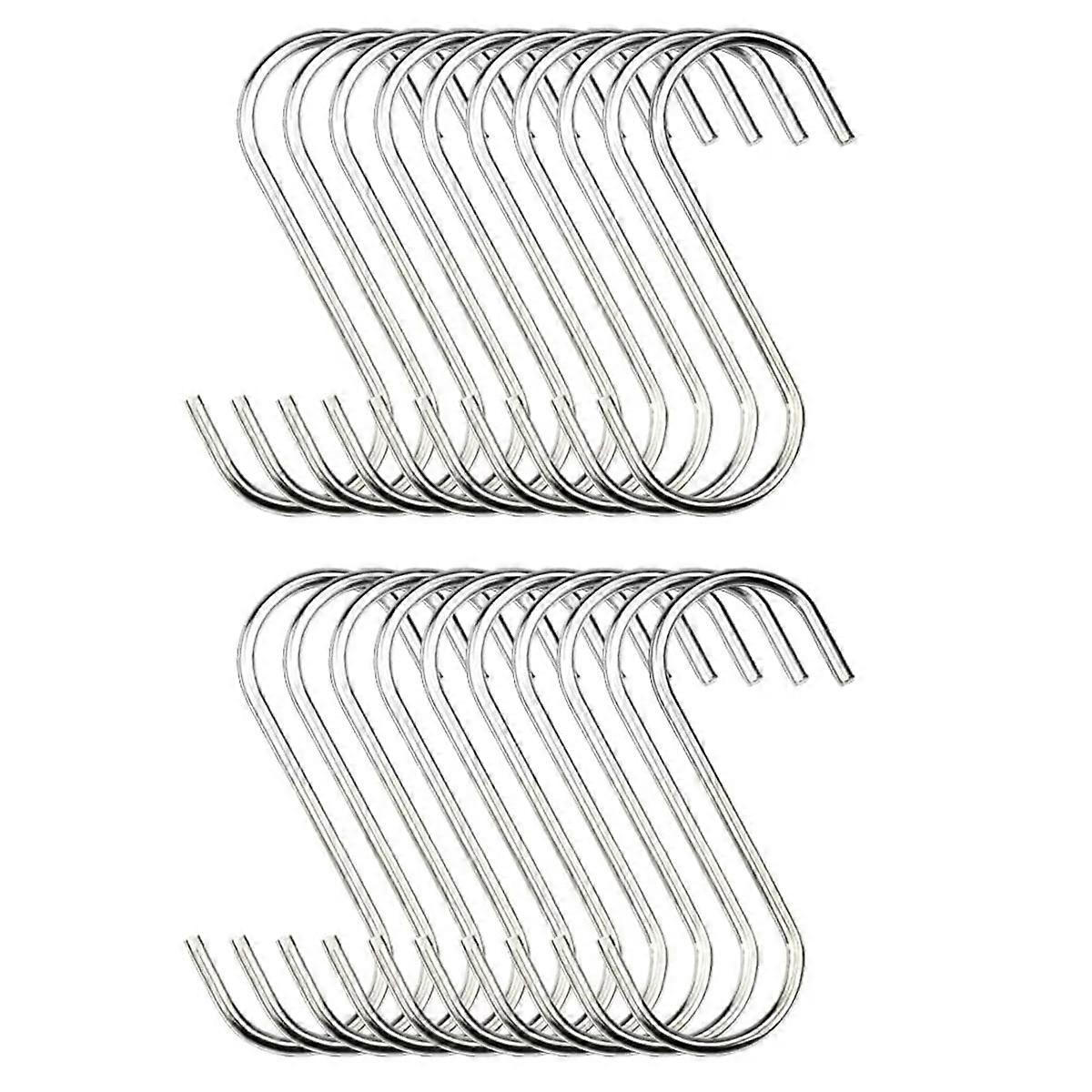 20 Stainless Steel S-Hooks for Kitchen, Bathroom, or Workshop Use