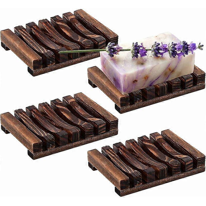 Set of 4 Bamboo Soap Dish for Kitchen, Bathroom, Shower