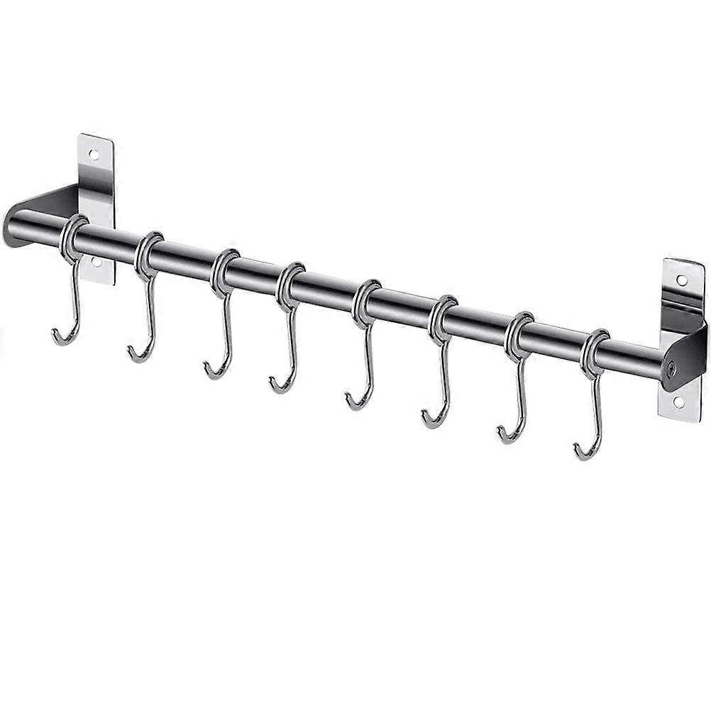 Stainless Steel Wall Mount Storage Rack with Multifunctional Hooks for Kitchen, Wardrobe, Bathroom – Easy to Clean & Install, No Punch Design, Silver