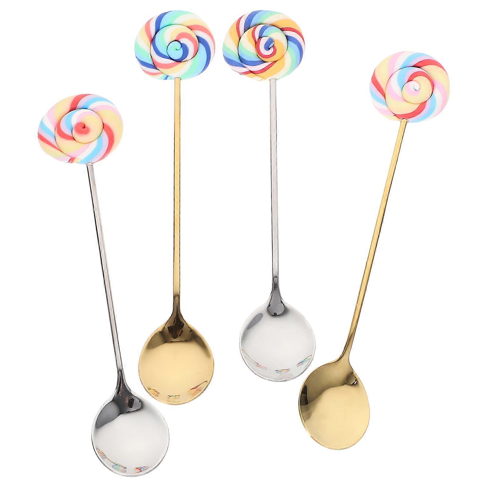 Stainless Steel Dessert Spoon for Coffee Tea Mixing in Kitchen Assorted Color Ergonomic Handle 4Pcs