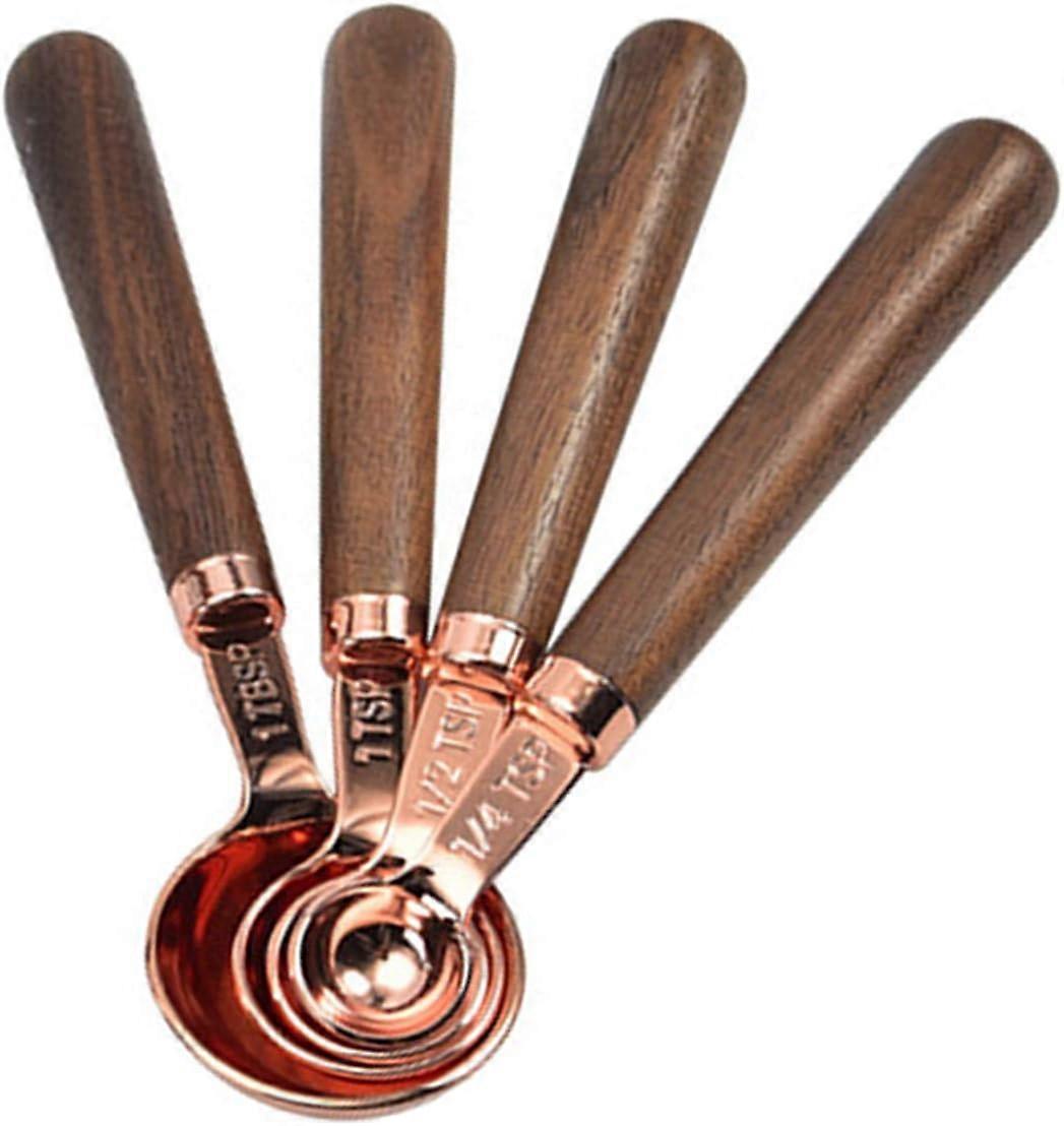 4-Piece Stainless Steel Measuring Spoon Set with Wooden Handles for Kitchen and Cafe