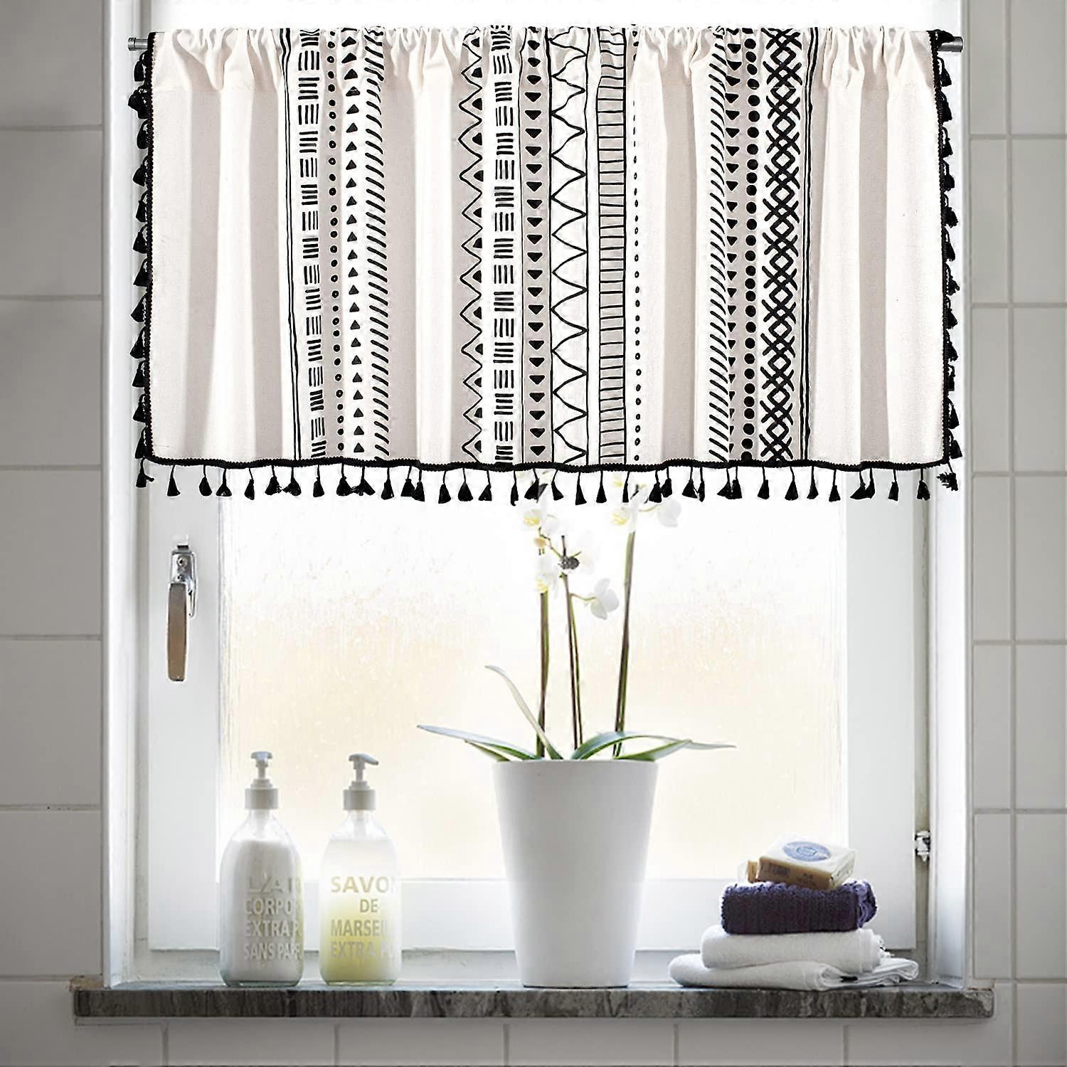 Cotton Linen Striped Curtains for Kitchen and Bathroom