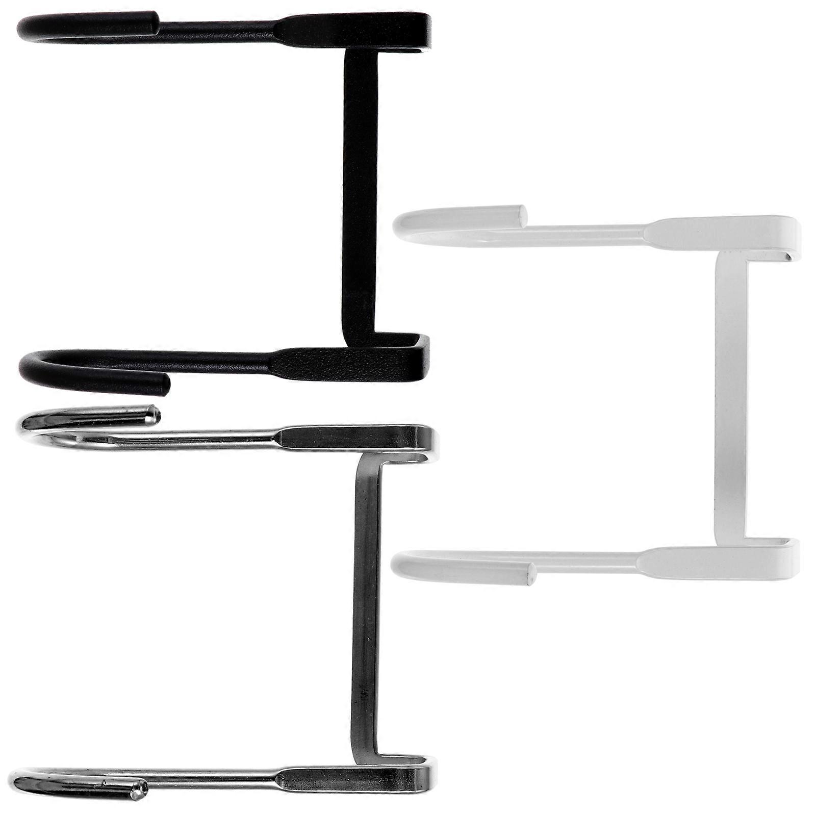 This over door hook is -shaped design, can use it without fixing it. The stainless steel make the hook not easy to rust and keep it solid, so it will not be curve. It can be used at anywhere needed, such as the door, kitchen, car, bathroom and so on. Features - Color: Black, White, Silver. - Material: Stainless steel. - Size: About 7.00X6.60X6.00cm/2.75X2.59X2.36inch. - Use it for hanging coats, bags, towels and everything. - Ensuring quality and longevity. Small and light design, it is multifunctional. - Easy to use and move, no screws and no drilling. - Great for organization in the kitchen, closet, bathroom, storage room, garage, workshop, office. - Brilliant storage solution for any area where space is limited. Package list: 3 x hook