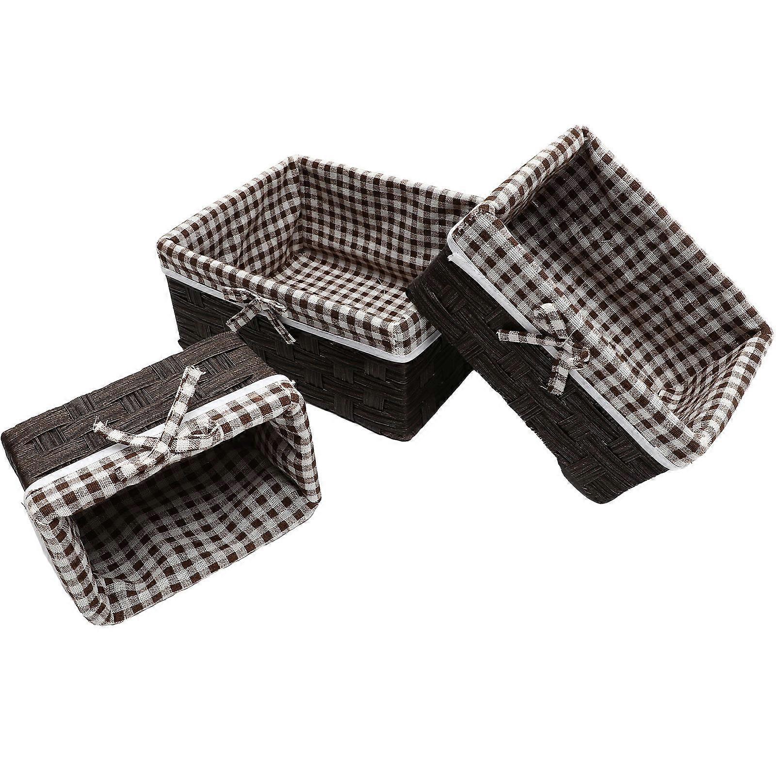 The woven handicraft basket with liner can add elegance and warmth feel to your home. This woven basket help you keep important item and clutter tidy and in one place where you could get it quickly. The basket is a multi-use storage container, utility and suitable for anywhere in the house. Features -Color:Multi -Material:Linen, iron, PP imitation rattan -Size:26.00X20.00X12.00cm/10.22X7.86X4.72in(Large) -Size:22.00X16.00X11.00cm/8.65X6.29X4.32in(Medium) -Size:18.00X12.00X10.00cm/7.07X4.72X3.93in(Small) - Selected material, which is not easy to deform or break, the woven basket can be used for a long time. - The reasonable structure can easily store all kinds of small objects, making your desktop more tidy. - Practical storage basket or as a decoration, suitable for your bedroom, bathroom, living room, closet, shelf or anywhere! - Designed with liners, these woven basket can provide additional protection, and will not scratch your things. - Simple and generous look design makes this basket match very well with many home decorative styles. Package list: 1 x large woven storage basket 1 x medium woven storage basket 1 x small woven storage basket