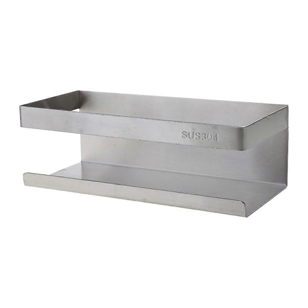 Kitchen Wall Mount Shelf Self Adhesive Punch Free Spice Storage Rack Bathroom Stainless Steel Shampoo Organizer