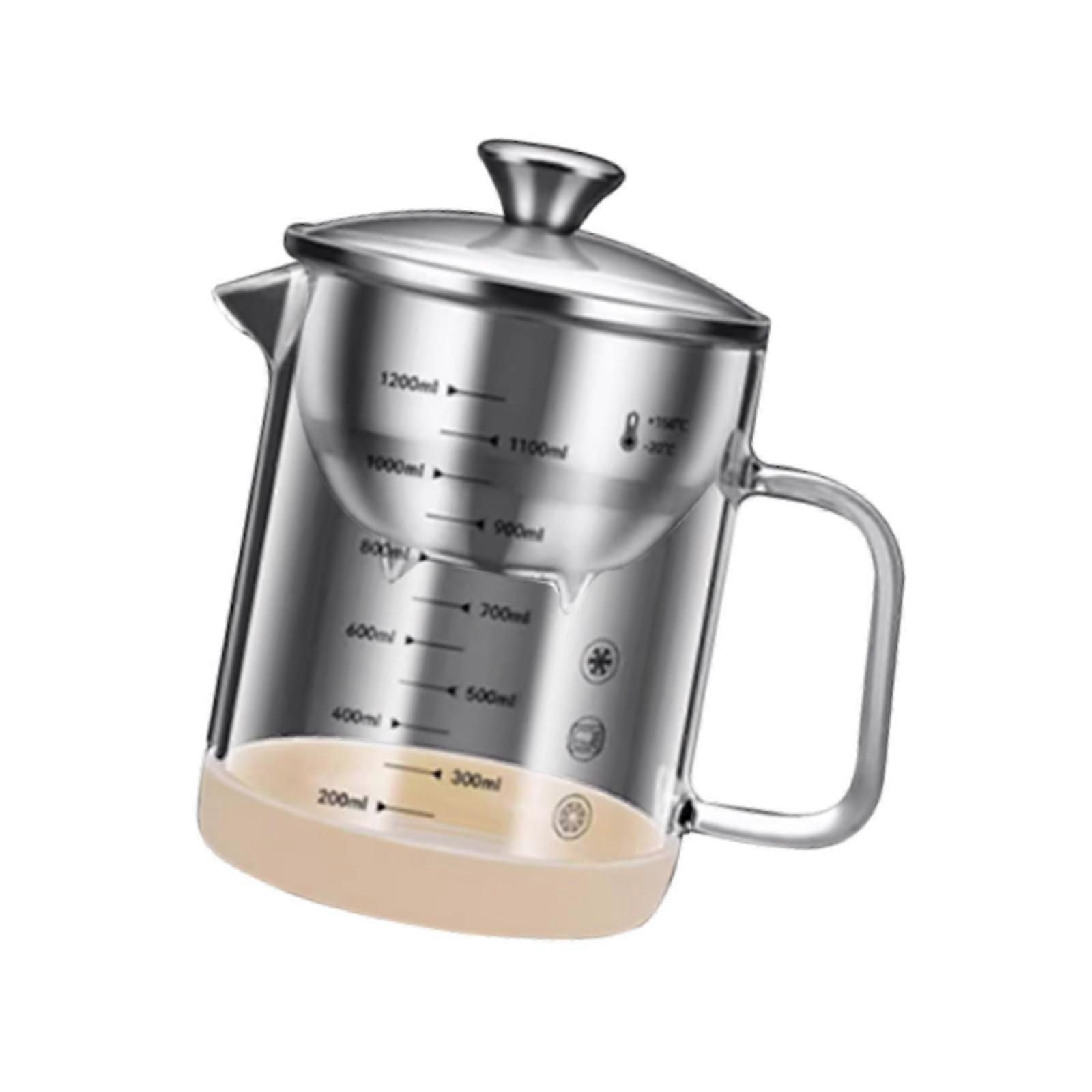 Description: Innovative Spout Design: Featuring an eagle beak spout design, this oil filter pot ensures a smooth pour without any spills or leaks, making it fit for kitchen use High Borosilicate Glass Body: Crafted from high borosilicate glass, the pot is highly resistant to heat and blast-proof, ensuring reliability and durability even under high temperatures Premium Materials: Made with a combination of stainless steel and glass, this oil filter pot offers great rust resistance and longevity while maintaining a sleek appearance Large Capacity & Dimensions: With a large capacity of 1200ML(1500ml optional) and dimensions of 12*18cm(1200ml), this pot is ideal for storing ample amounts of oil or other liquids for various cooking needs Complete Package: The package includes 1 oil filter pot that combines functionality with style, making it an essential addition to any modern kitchen setup Specification: Material:Stainless steel, glass Size Chart: Small(1200ML): WxH 12cmx18cm/4.72inchx7.09inch or Large(1500ML): WxH 12cmx21.5cm/4.72inchx8.46inch (optional) Package Includes: 1Oil Filter pot Note: Please allow slightly errors 1-2cm/0.39-0.79inch differences due to manual measurement.