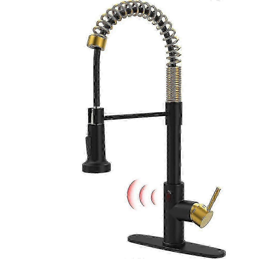 1.Touchless Activation: Effortlessly turn water on or off with a simple hand motion near the sensor. 2.Automatic Shut-Off: Conserves water with a 3-minute auto shut-off feature for added convenience and . 3.Pull Down Sprayer: Extended reach and versatility for all your kitchen tasks, from rinsing vegetables to filling pots. 4.Stainless Steel Construction: and stylish blackandgold finish complements any modern kitchen decor. Note: Due to the light and screen setting difference, the item's color may be slightly different from the pictures. Please allow slight dimension difference due to different manual measurement.