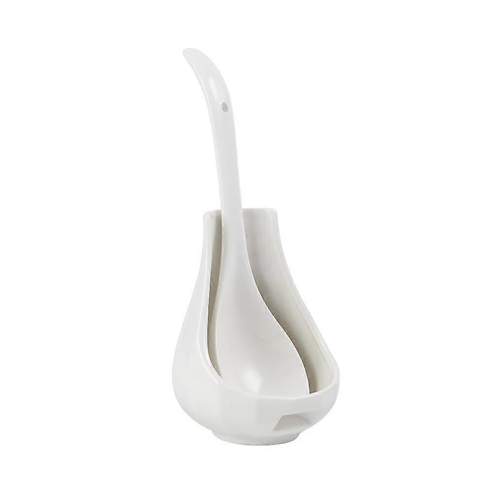 Ceramic Spoon Holder Set with Kitchen Spoons, White Decorative Eating Scoop Set for Cooking, Easy to Clean Kitchen Gadgets for Baking and Table