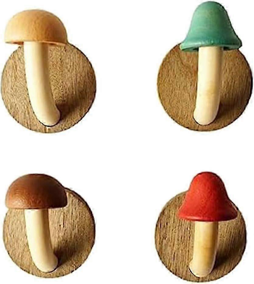 4-Piece Wooden Mushroom Coat Hook for Kitchen Bathroom Door