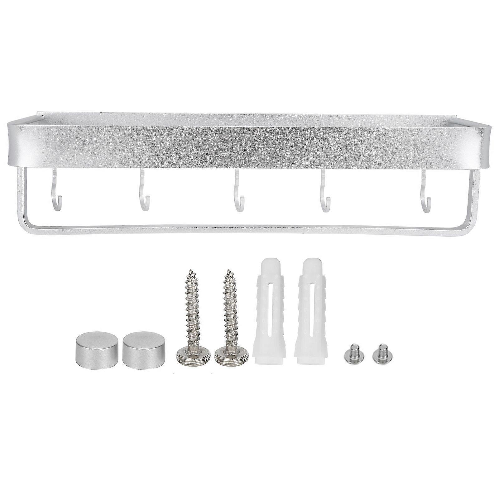 WallMounted Storage Rack Shower Shelf Multifunctional Storage Holder for Kitchen Bathroom(40cm Storage Rack with Rail and Hook )