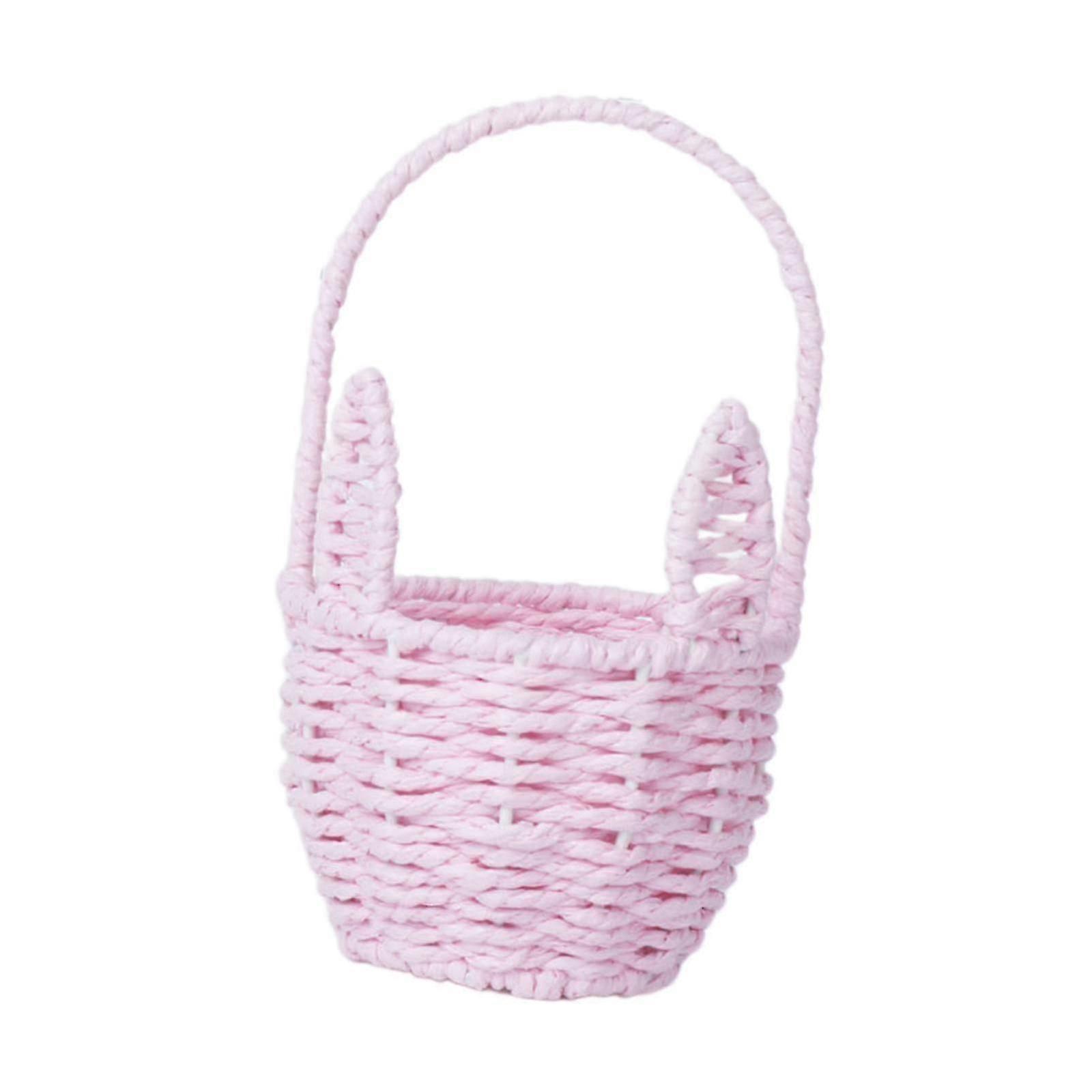 Easter Bunny Basket Decor for Kitchen Home Camping - White & Pink - 21x12.5x8.5cm