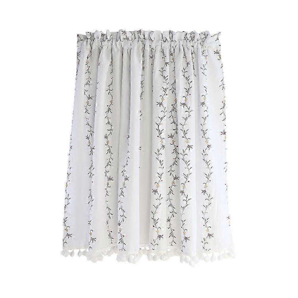 White Cotton Short Curtain for Kitchen Room Decoration 140X60CM Sunlight Block 1Pack