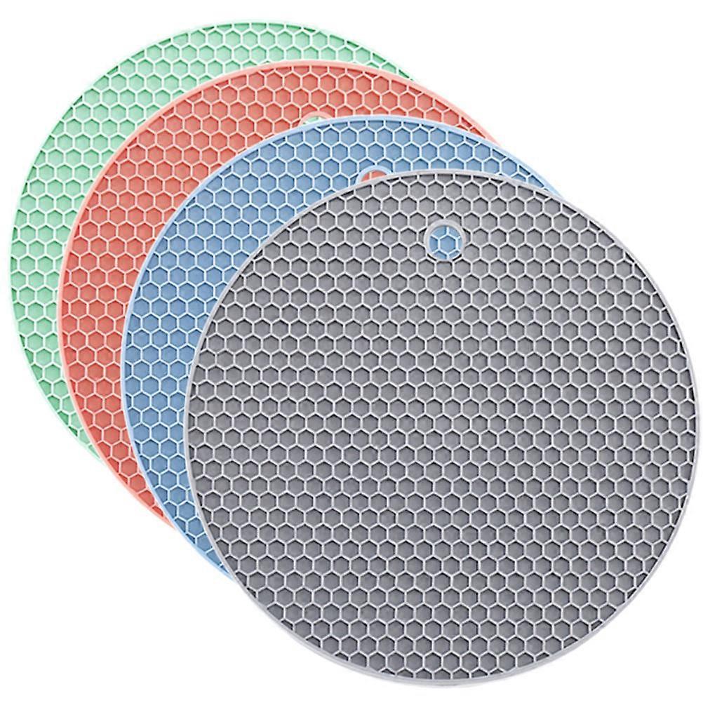 Kitchen Trivet Mat 4Pcs Silicone Honeycomb Pattern Protective Round Shape Perfect For Home Decoration