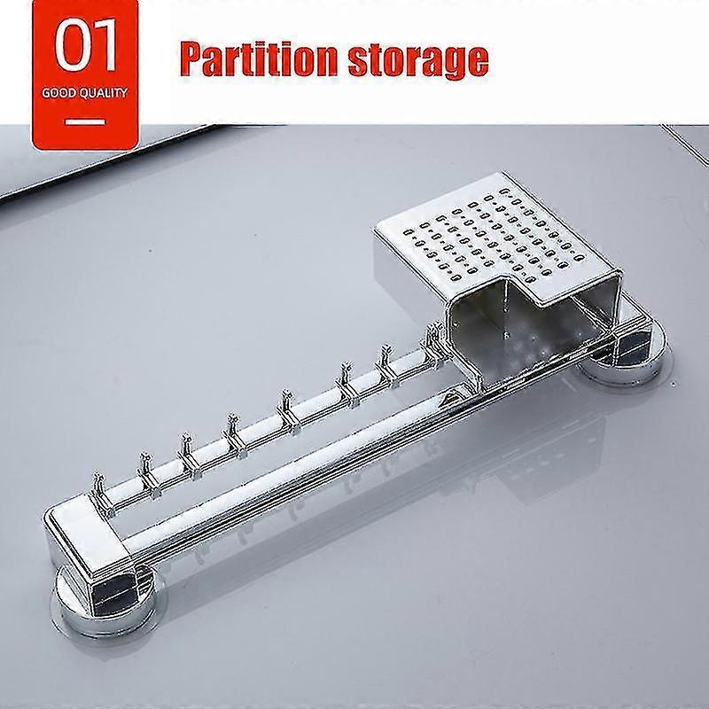 Feature:High Quality Material:Made by good quality stainless steel, it is not rust. And dust and oil can be removed easily and quickly. The sliding hook could be adjusted by yourself according to your need. The hollow cups help to drain quickly, damp-proof and reduce bacterial.Unibody Design:With 8 Hooks, Knivies Slots, Utensil Cups holder, this wall rack not only can store the spice bottles, but also can hang the pots and pans, do as cutter holders and tablecloth rack. This design helps you clean up all cookware, save the spaces and you just can look for what you need from the neatly shelf.Easy Assembly & Strong Loading:This design has durable and strong suction cup, you can apply it to any smooth and clean surface wall. Besides, the wall rack could withstand 8KG weight without get out of shape, you could fit a lot of stuff on it without worry.Compact Size for Home:Measuring 49 x 14 x 6.5cm, it is compact enough when installed in the wall and give the better visual effect. For its simple design and compact size, it can decorate your kitchen, bedroom, laundry room, bathroom etc.Specification:Material: Stainless Steel, ABSSize: 49 x 14 x 6.5cmColor: As the picture showQty: 1 setLoad Bearing: 8KGincludes:1 set x Kitchen Rack