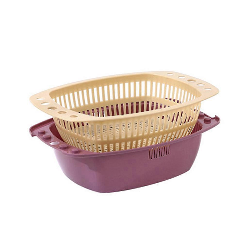Kitchen Multi-Purpose Basket Double Layer Plastic Washing Basin for Vegetable Fruit Purple 32.5X23X19cm Water Draining 2Pcs