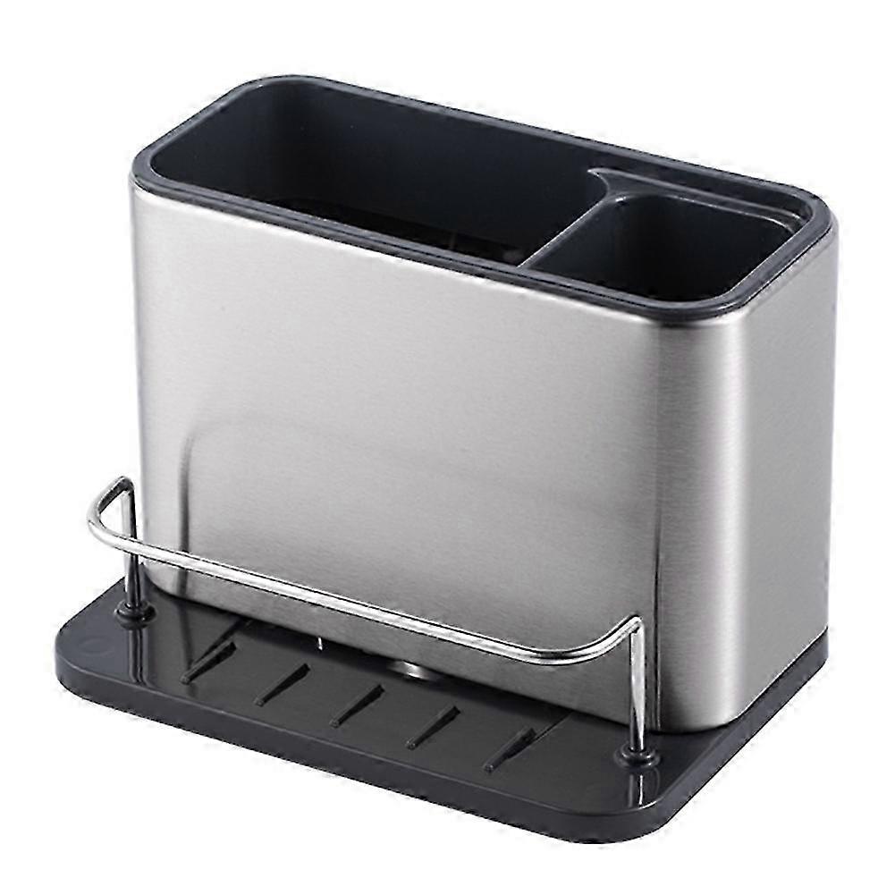 Organised storage for washing-up items. Includes separate brush and bottle compartments and handy rail for drying wet cloths and sponges. Sloped base allows water to drain out of sight. stainless-steel coating and non slip feet. Dismantles for easy cleaning. Colour:Black & Silver Material:430 stainless steel + PP Package Contents: 1 * Kitchen draft Only the above package content, other products are not included. Note: Light reflection and different displays may cause the color of the item in the picture a little different from the real thing. The measurement allowed error is +/- 1-3cm.