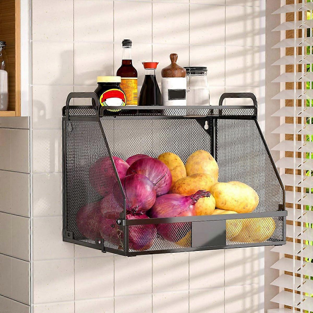 Hanging Fruit Basket for Kitchen, Kitchen Organizers and Storage Potato Onion Storage Wall Storage Baskets Pantry Black