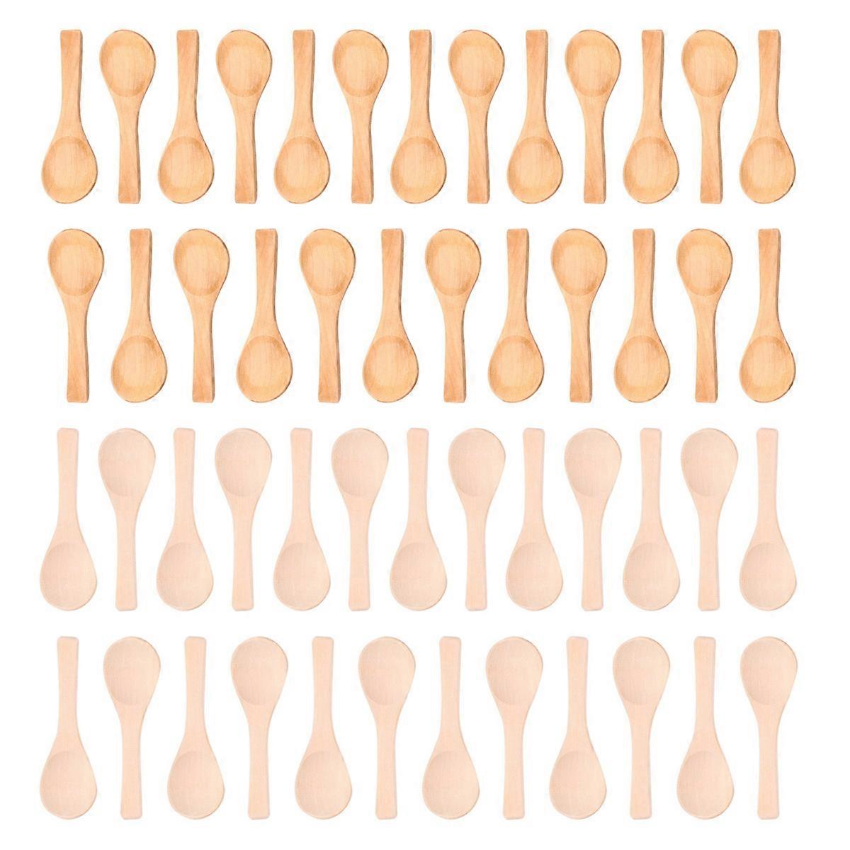 50 Pieces Wooden Spoon Mini Natural Spoon for Kitchen (Mixed Color)