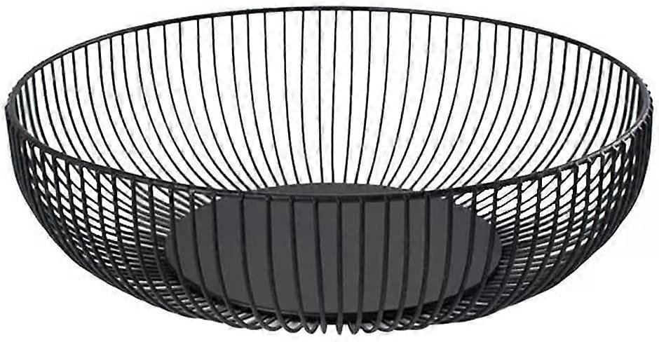 Metal Wire Countertop Fruit Bowl Basket Holder Stand for Kitchen | Black Modern Home Table Decor - 11 Inch (Round C)