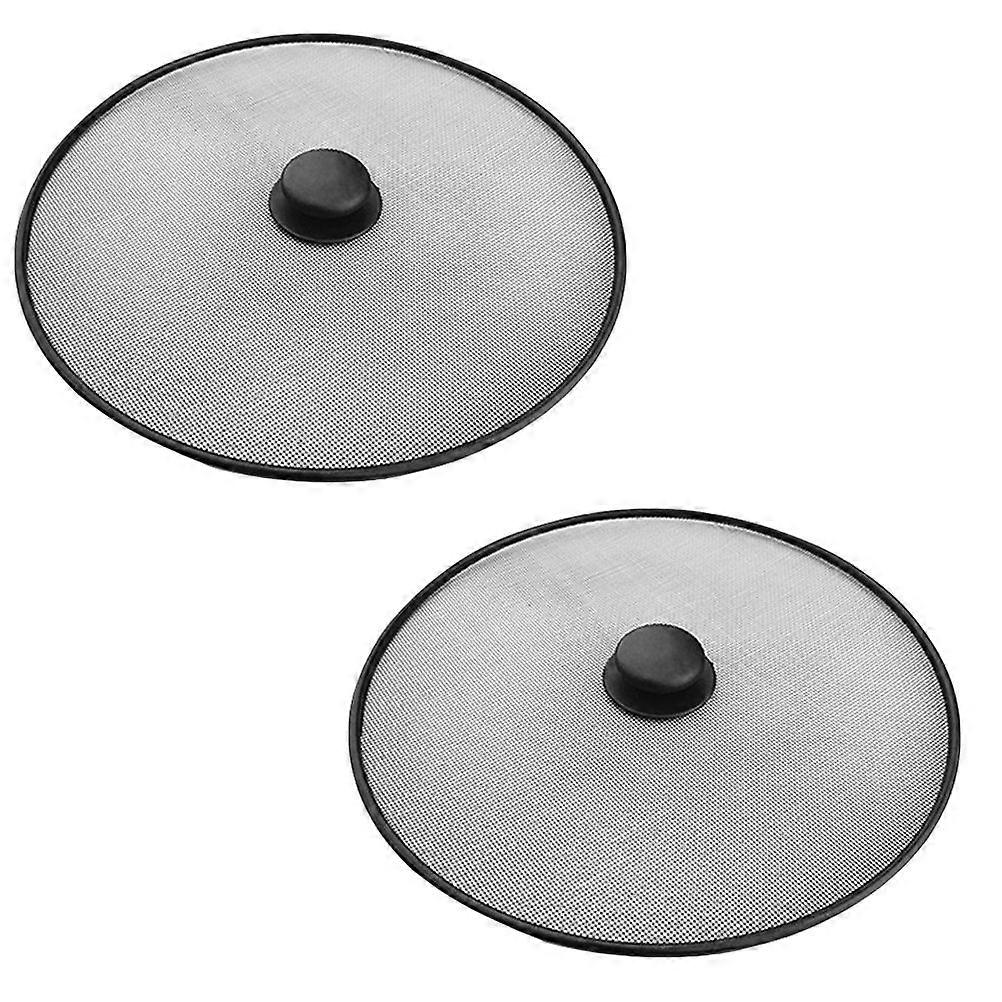 2Pcs Stainless Steel Pot Lid Mesh Oil Cover for Kitchen Prevents Splashing Black