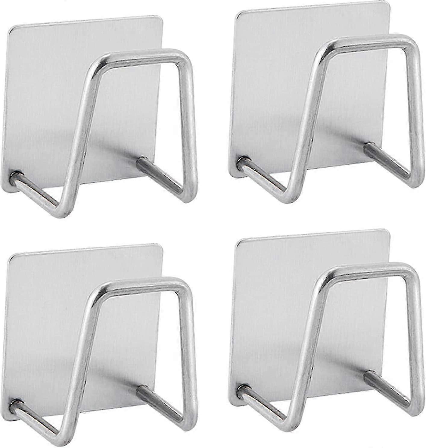 Set of 4 Self Adhesive Sponge Holders for Kitchen, No Drilling Mounting, Stainless Steel, Rustproof and Waterproof, Silver