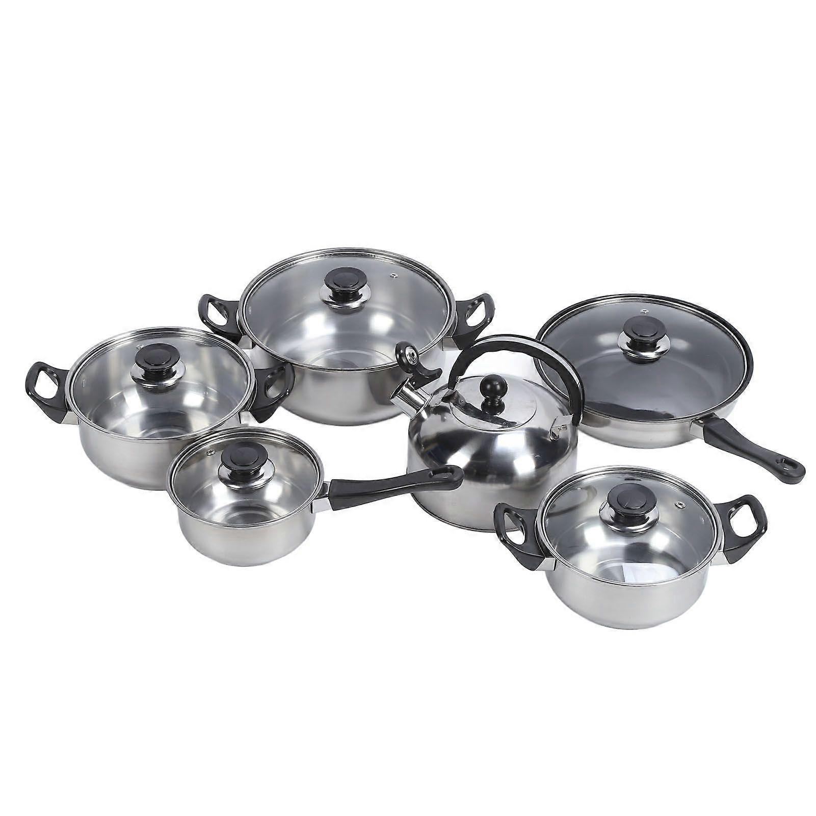 Kitchen Cookware Set Stainless Steel Pots Pans Set Includes Saucepan Stock Pot Non Stick Frying Pan Tea Kettle Plastic Black Handle