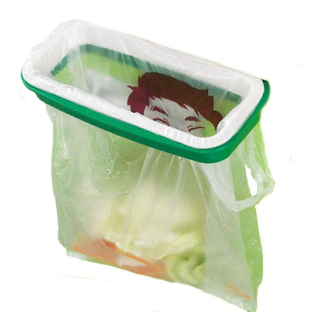 Hanging Trash Bag Holder for Kitchen Cupboard, 8.7" x 4.9", Green and White