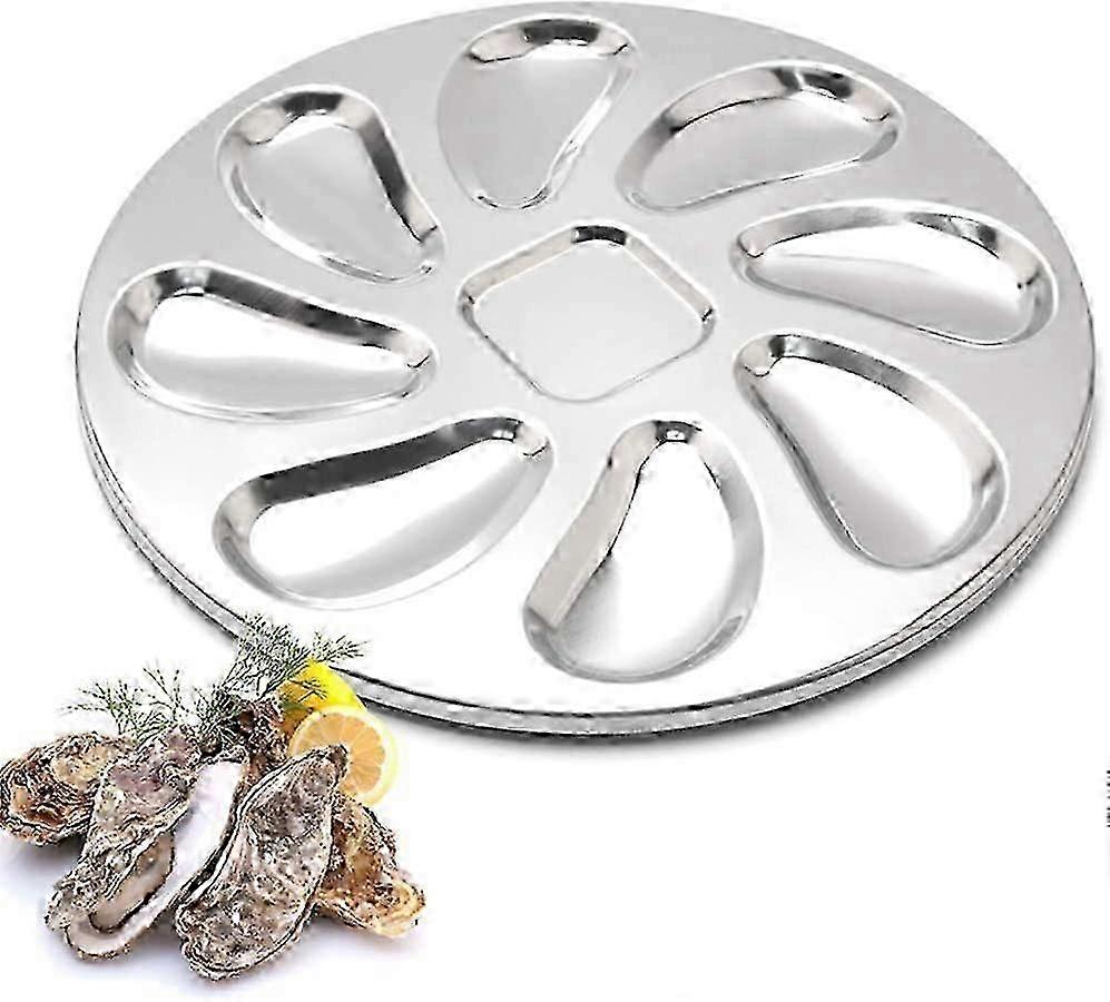 Kitchen 8 oyster troughs Stainless steel oyster plate (silver) 1 piece