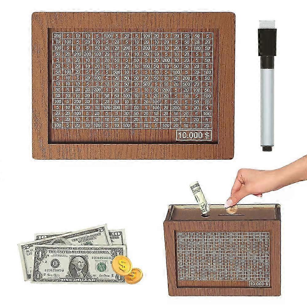Cash Vault Wooden Savings Box, Cash Savings Challenge Box,Money Box with Target Numbers 2025