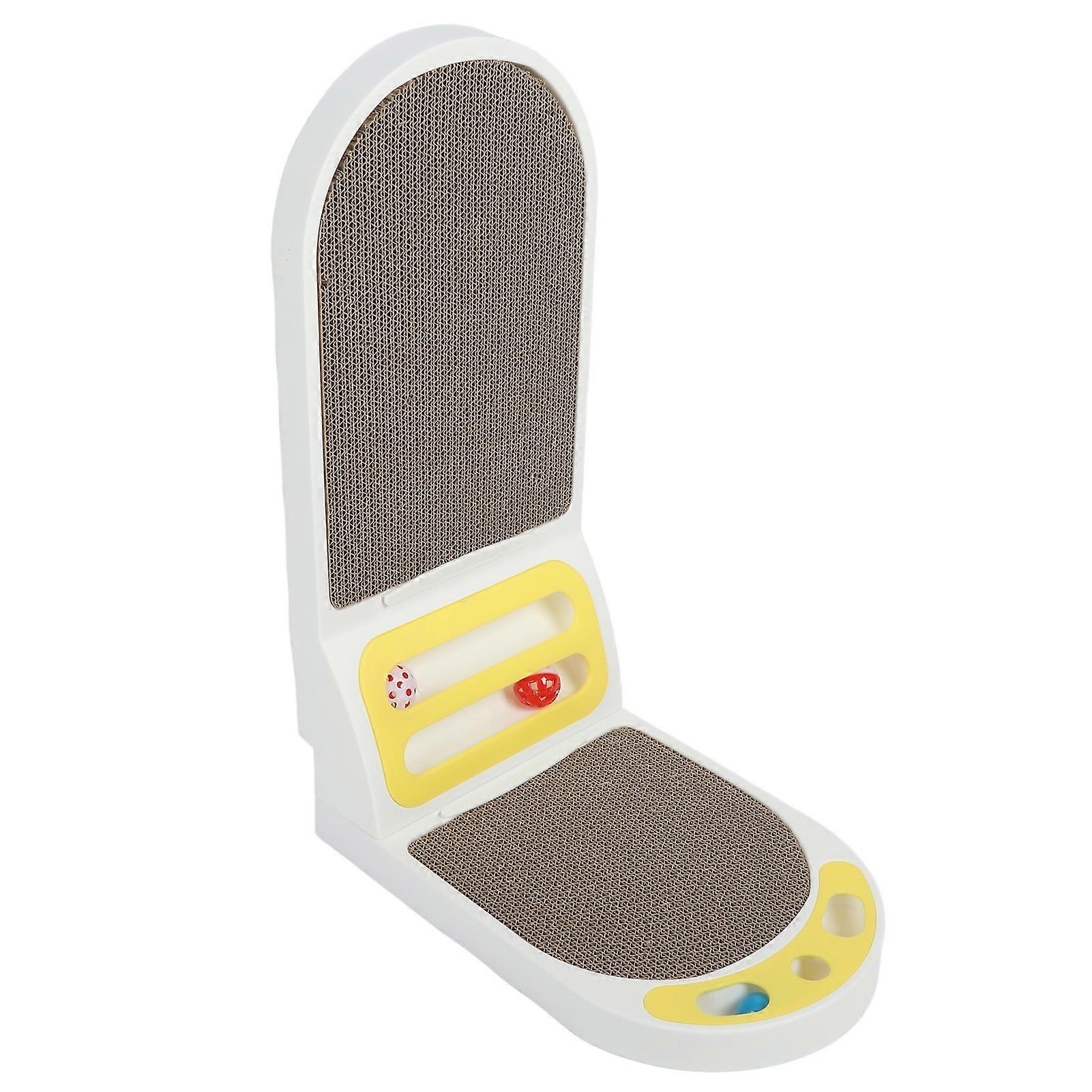 Cat Scratcher L Shaped Scratch Resistant Wearable Cat Scratch Pad with Bell Ball Toy for Indoor Large Cat Kitten White Item Type: Cat Scratcher Material: Plastic, Corrugated Paper Size: Approx. 58 x 42 x 26cm / 22.8 x 16.5 x 10.2in Usage: L Shaped Cat Scratch Pad