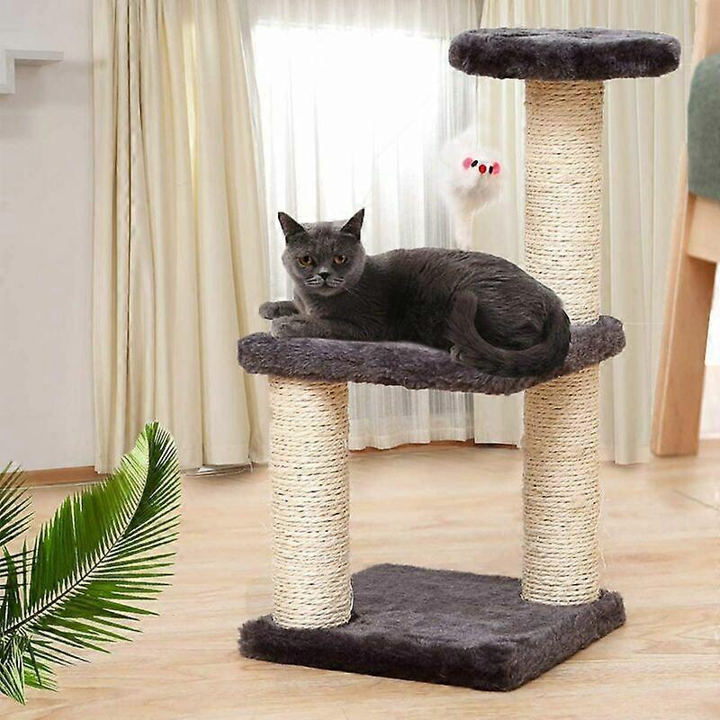 Cat Tree, Three Layers Cat Toy Cat Tree Scratching Post Activity Center Niches Reinforced Columns Large Capacity (20cm x 20cm x 40cm)-black