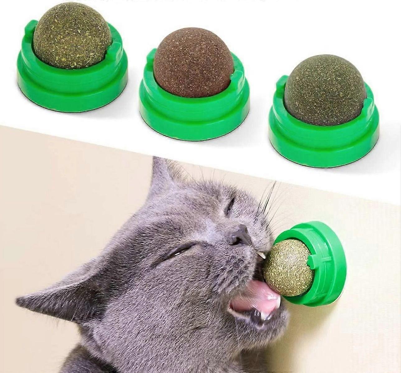 Catnip Balls Rotatable, Edible Kitty Toys for Cats Lick, Safe Healthy Kitten Chew Toys, Teeth Cleaning Dental Cat Toy, Cat Wall Treats
