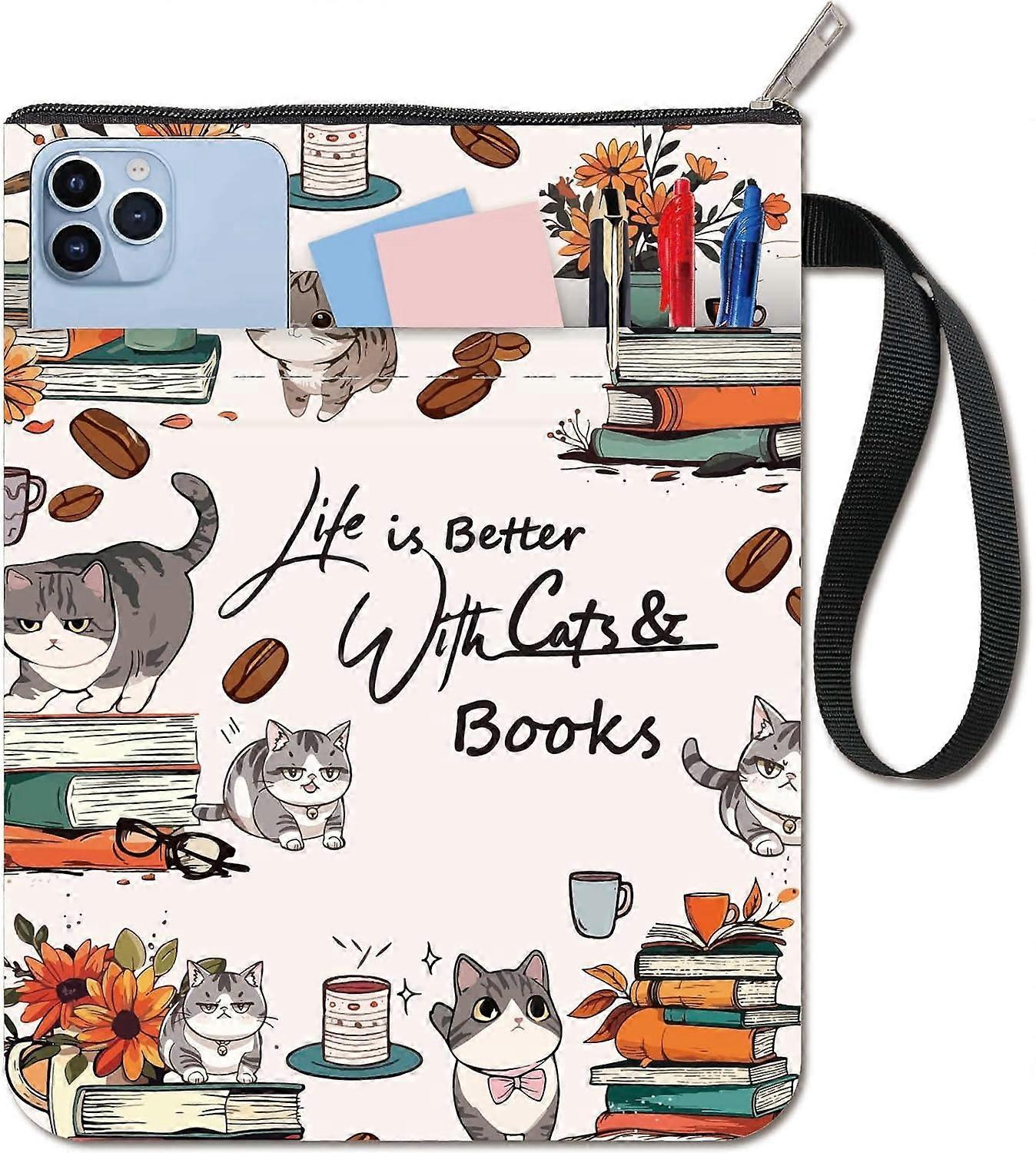 Cat Book Sleeve Flower Book Covers Book Protector for Paperbacks Washable Fabric Cloth Book Cover with Zipper and Extra Sleeve Pocket for Book Lovers