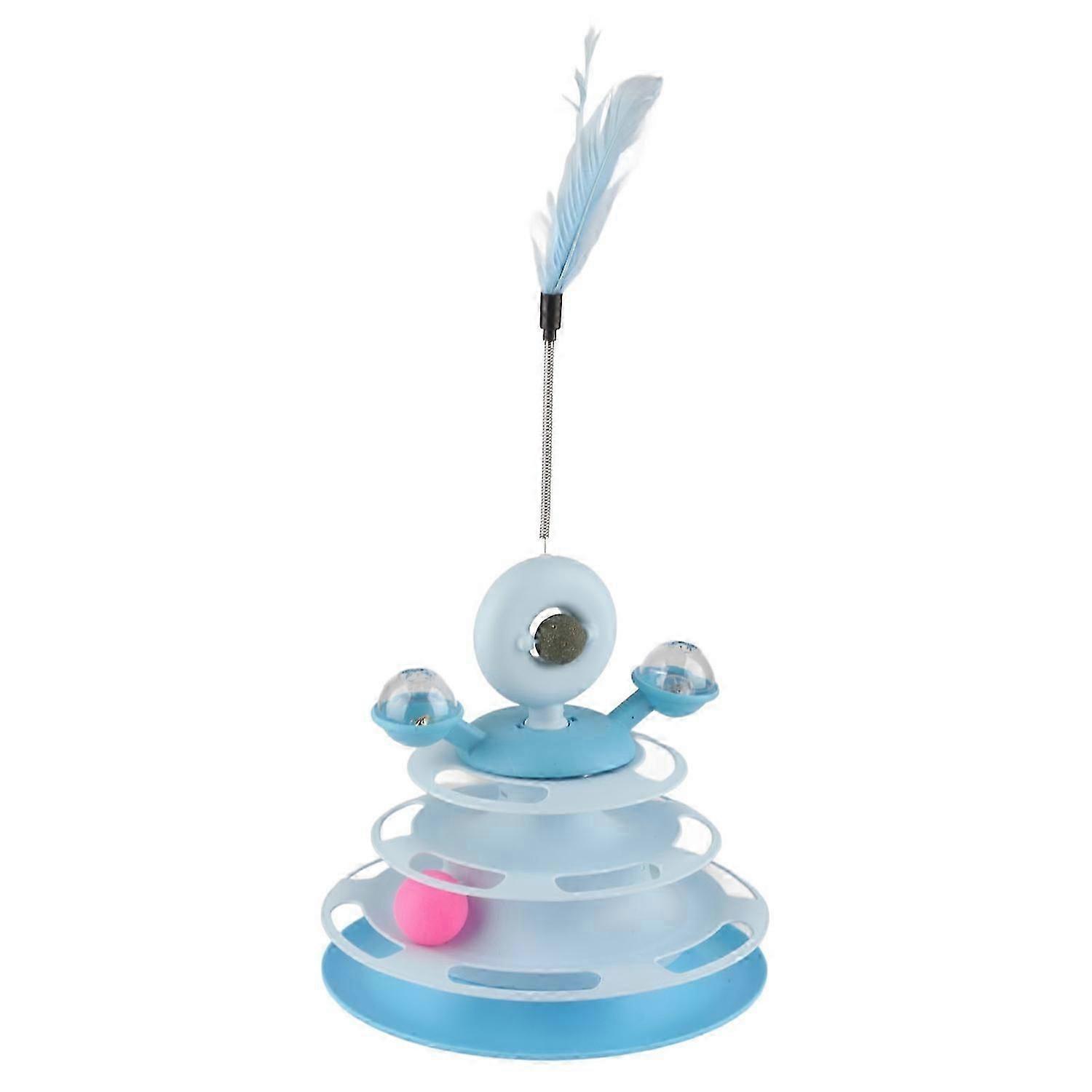 Cat Ball Tower Toy with Feather Catnip 4 Layer Rail Pet Turntable Game for Exercise Blue