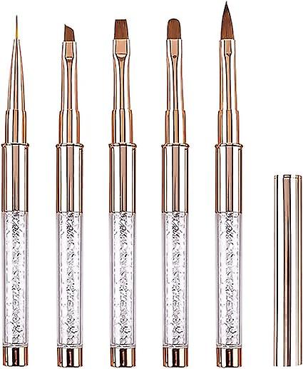 Professional Gel Nail Art Brush with Cap - 5 Fine Liner/Flat/Round/Acrylic French Brushes Set
