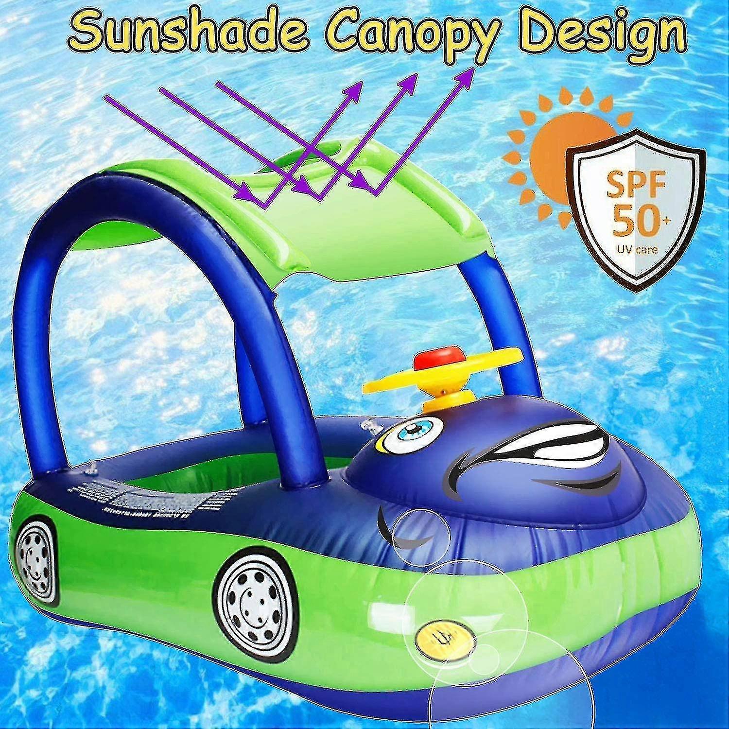 Awning Design: Awning can protect your baby from sunlight and UV rays. Our swimming boat also has a car-like design with a cute steering wheel that turns and a cute horn in the middle of the buzzer. More fun here.