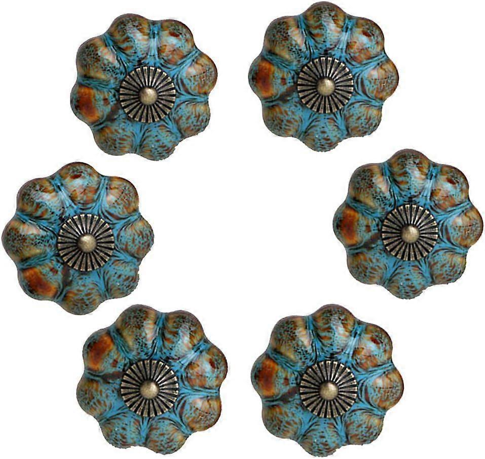 Set of 6 Decorative Glazed Ceramic Door Handles for Cabinets, Bathrooms, Wardrobes, Drawers (Blue)