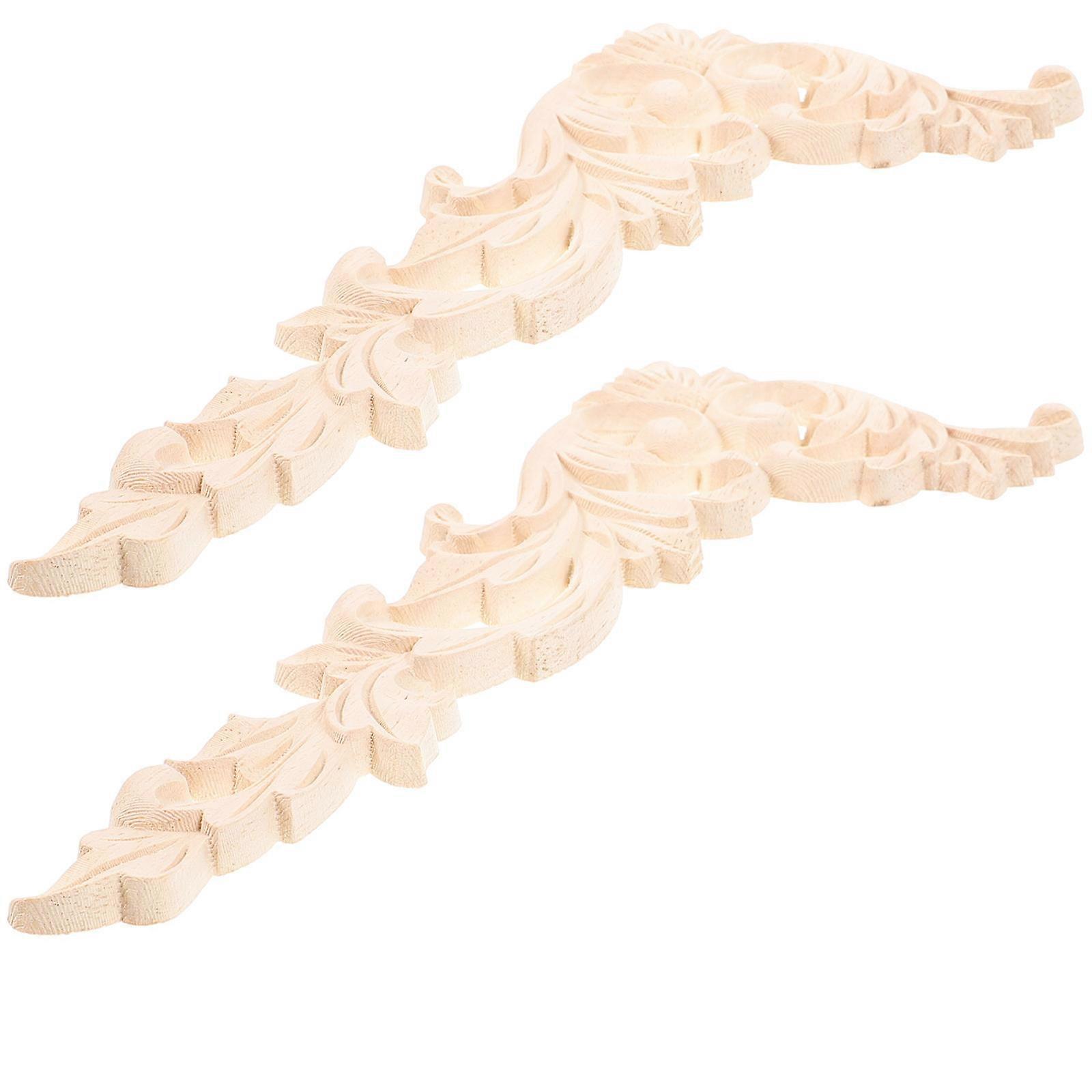 2pcs Unpainted Wooden Applique Decorative Carved Onlay for Cabinet, Furniture, Door, Bed, and Mirror Decoration – Fine Craftsmanship