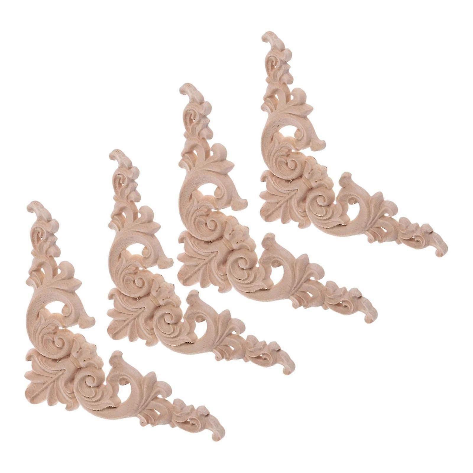 Set of 4 Wood Carved Long Onlay Applique Unpainted Door Wall Decor for Cabinet Home Furniture
