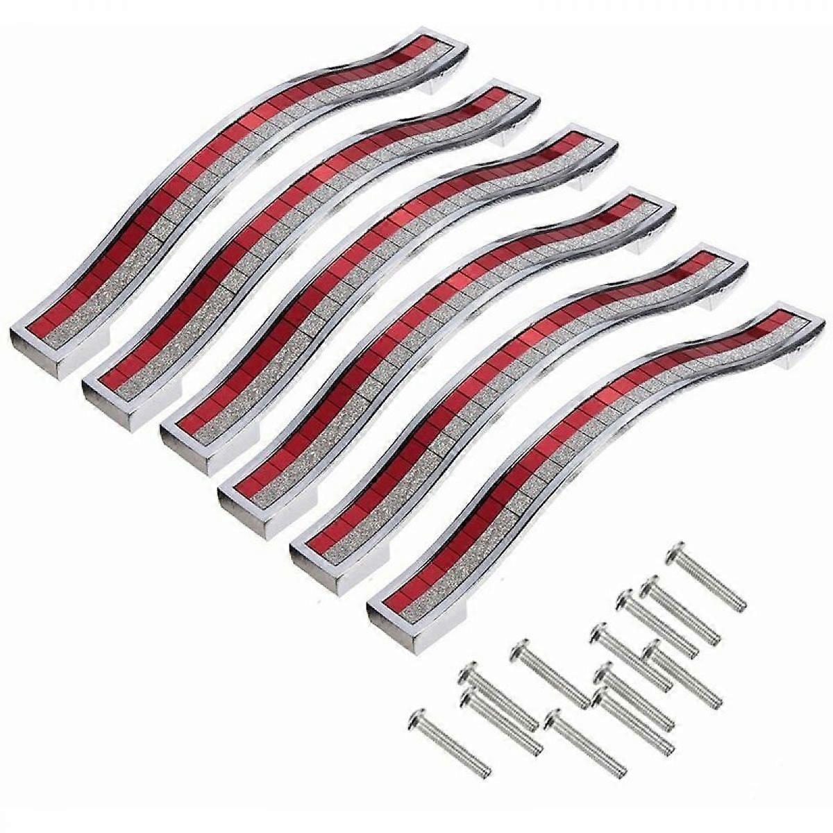 6 Crystal Door Handles for Cabinet or Wardrobe, Silver Red Finish