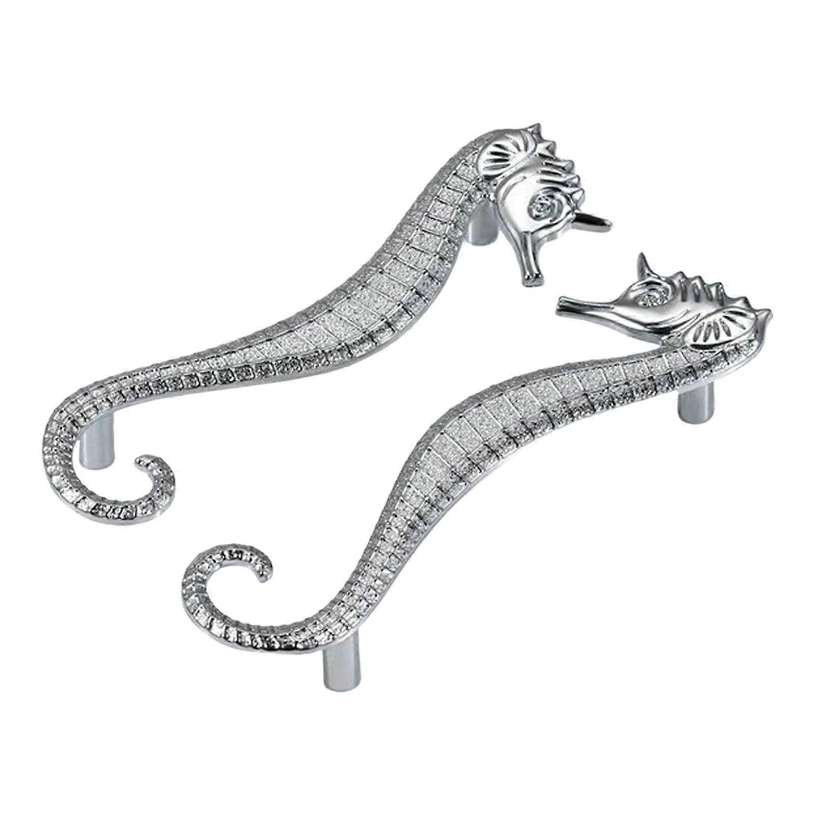 Description: 【Antique Style Cabinet Pull Handle】: Chic and retro style handle pull made of high quality zinc alloy material, which is sturdy, wear resistant, elegant, and durable. 【Simple Look】: Drawer pulls feature super cute seahorse shape and vivid colors, delicate craftsmanship, that work with farmhouse, vintage, traditional, and transitional styles; comfortable grip, a comfortable holding feeling and it does not damage the hand. 【Application】: Dresser knobs are the perfect fit for the bin, dresser, drawer, cabinets, bathroom vanities, tables, hutches, cupboards, and all home furniture. 【Easy Installation】: Hole Distance: 96mm, Total Size 13.5cmx2cm/5.31inchx0.79inch, quite easy for you to install them just with a tool. 【Package Contains】: Package Includes 1 pair of cabinet knobs and 4 installed screws. Specification: Material: Zinc Alloy Package Includes: 2 Cabinet Handle Pull 4 Screws Note: Please allow slightly errors due to manual measurement and different monitors.