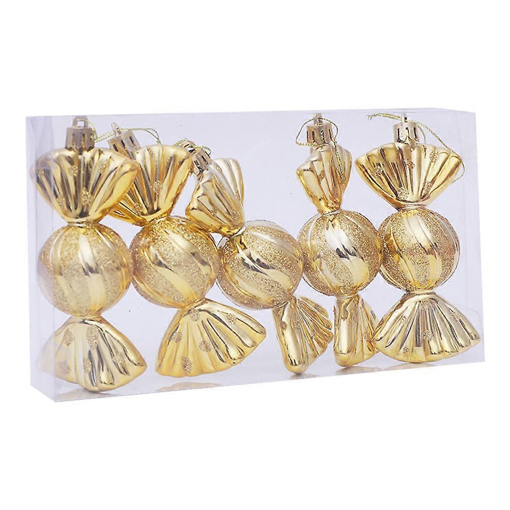 Candy Shape Pendant Home Decor Simple Style Golden 11X4CM Plastic Christmas Decoration For Banquets 5Pcs