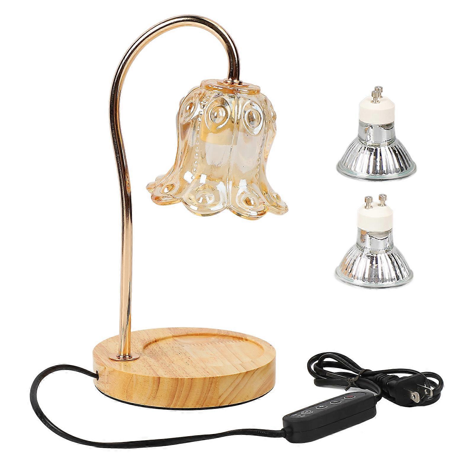 Candle Lamp Dimmable Timing Wooden Base Glass Lampshade Anti Slip Metal Pole Candle Warmer with Bulbs for Bedroom Office US Plug Taiwan Plug 110-130V