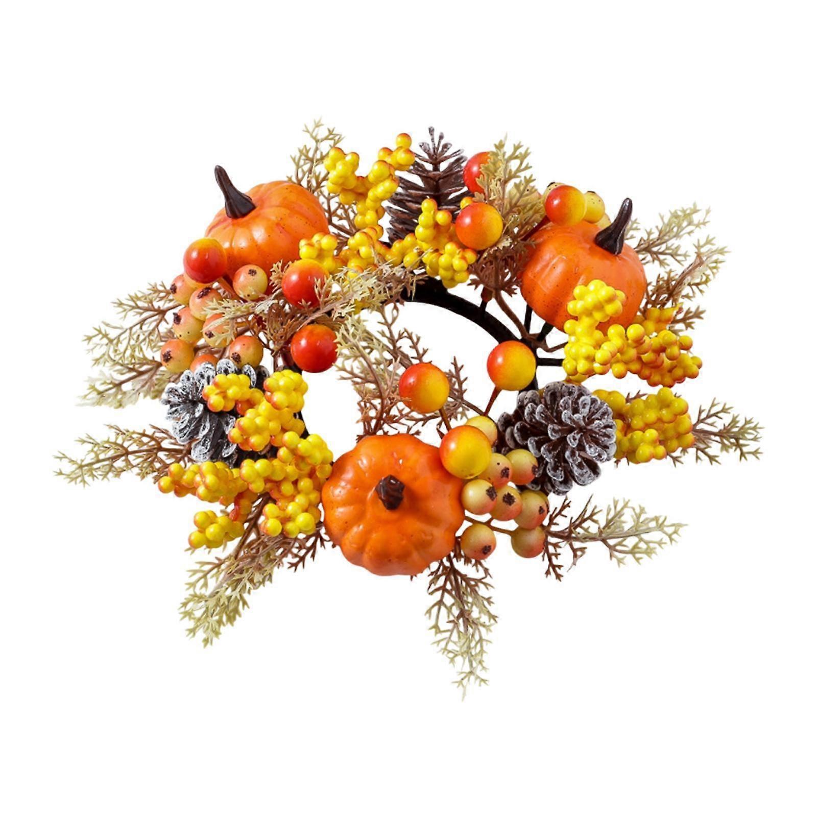 Candle Ring Artificial Wreath Pumpkin Autumn Wreath for Tabletop Dining Room